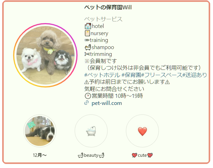 ペットの保育園Will公式 instagramのページ